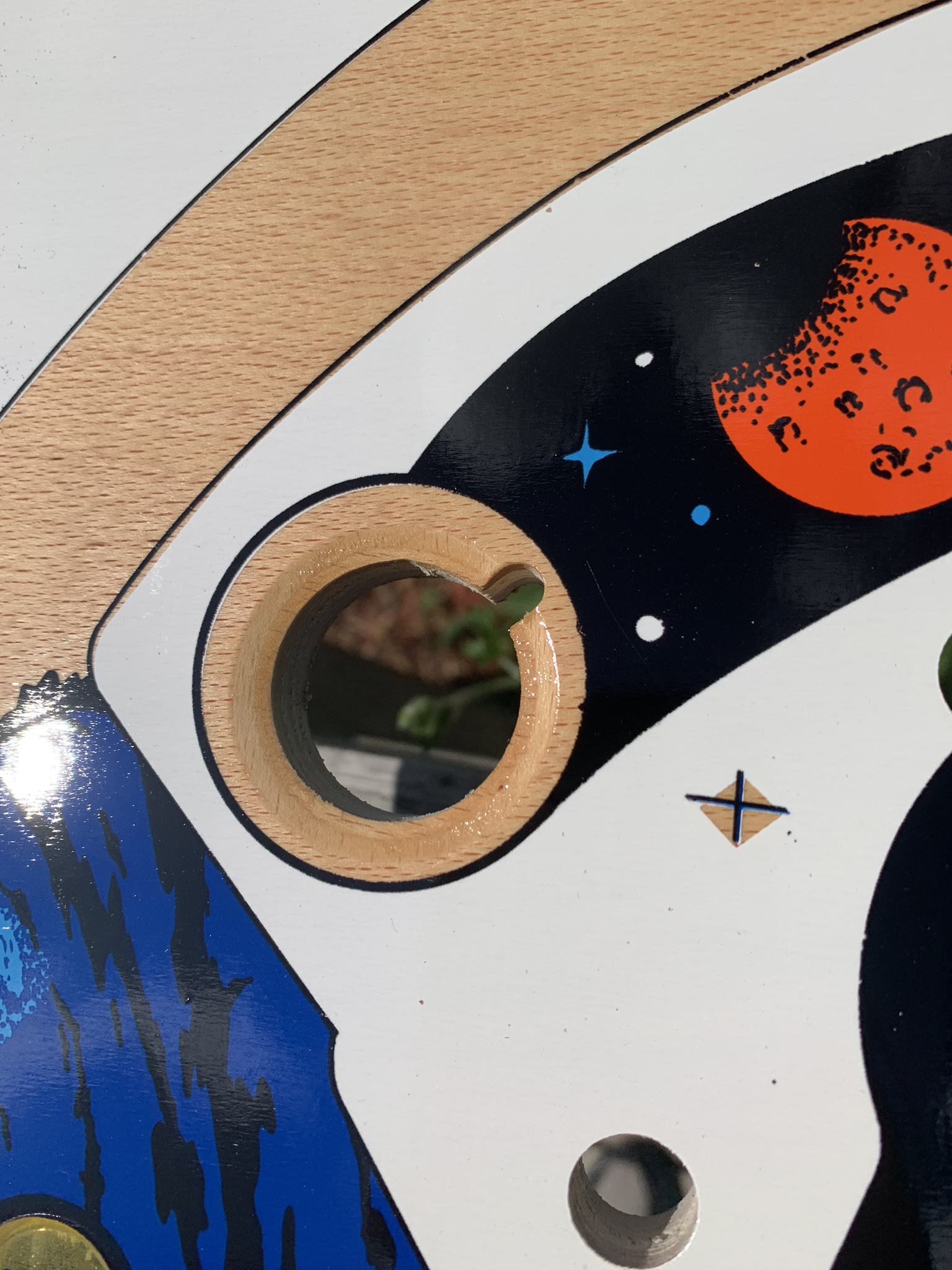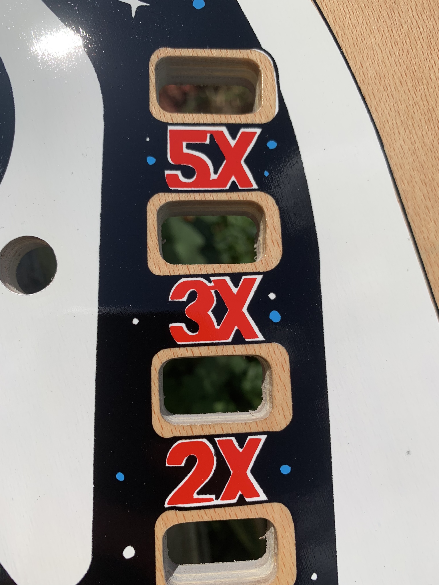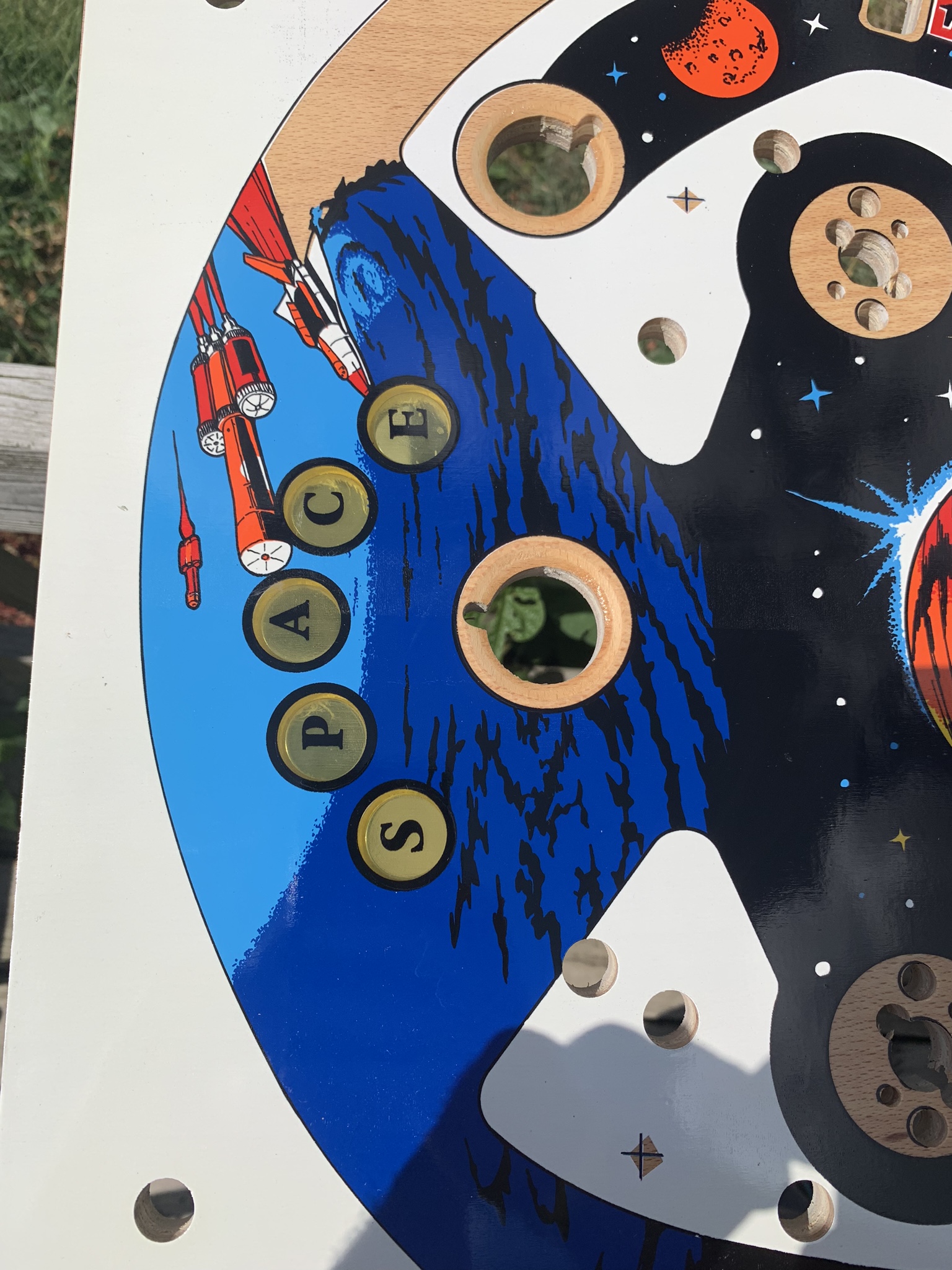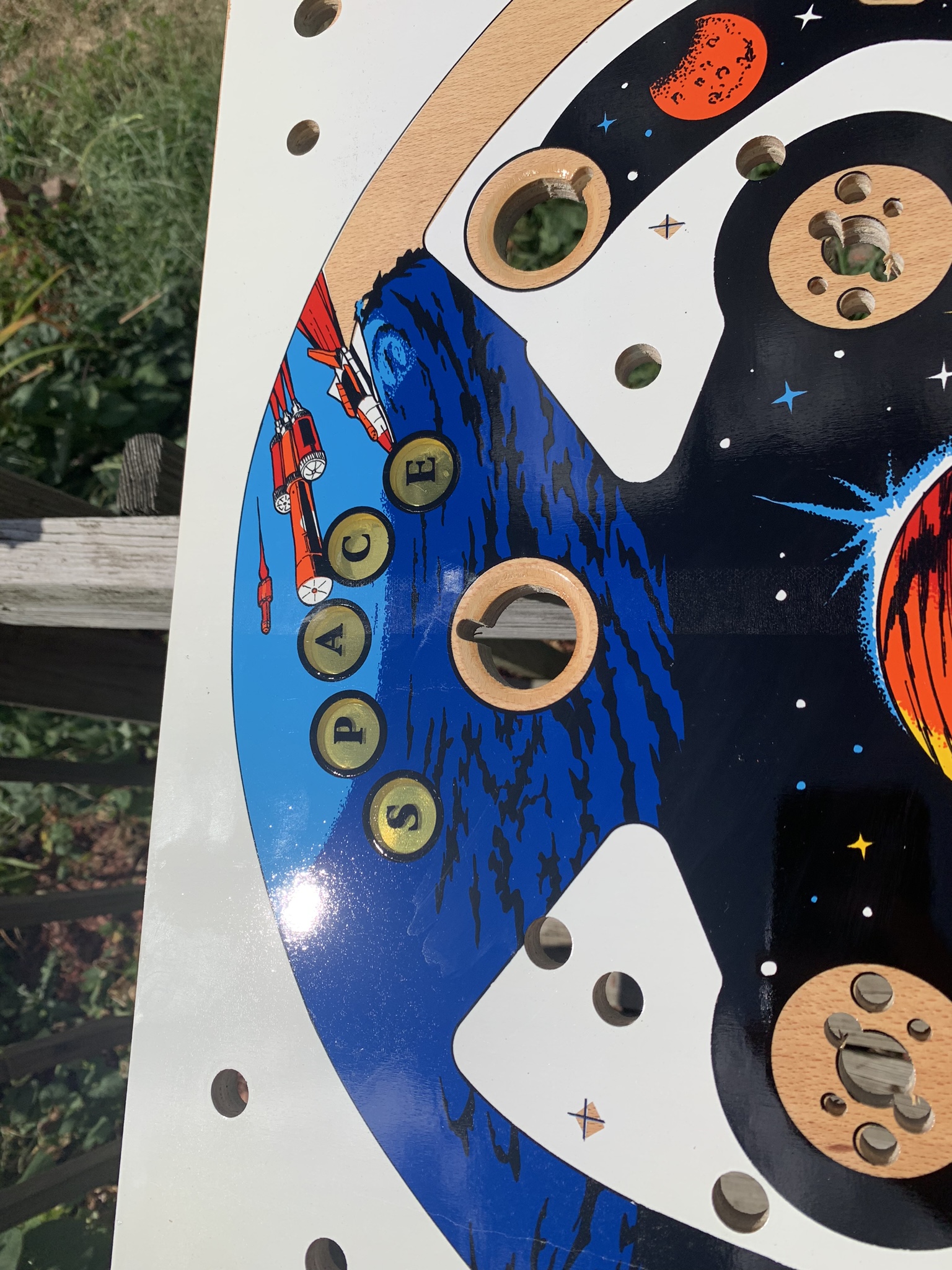 This playfield can be drilled and dimpled as well, and of course I can always add my clearcoat services as well. With an item this rare and unique I would actually go so far as to recommend my drill, dimple, & clearcoat if you plan to install it in a machine, but if you are just purchasing it as a unique and rare wall decoration or collectible skip the clearcoat and just spring for shipping in one of my custom crates to insure that it arrives to your doorstep safely. The playfield does come with a complete set of plastics as well for the $1100 price tag, if you do not plan to install in machine and would be interested in purchasing just the playfield I could let it go for $1000.