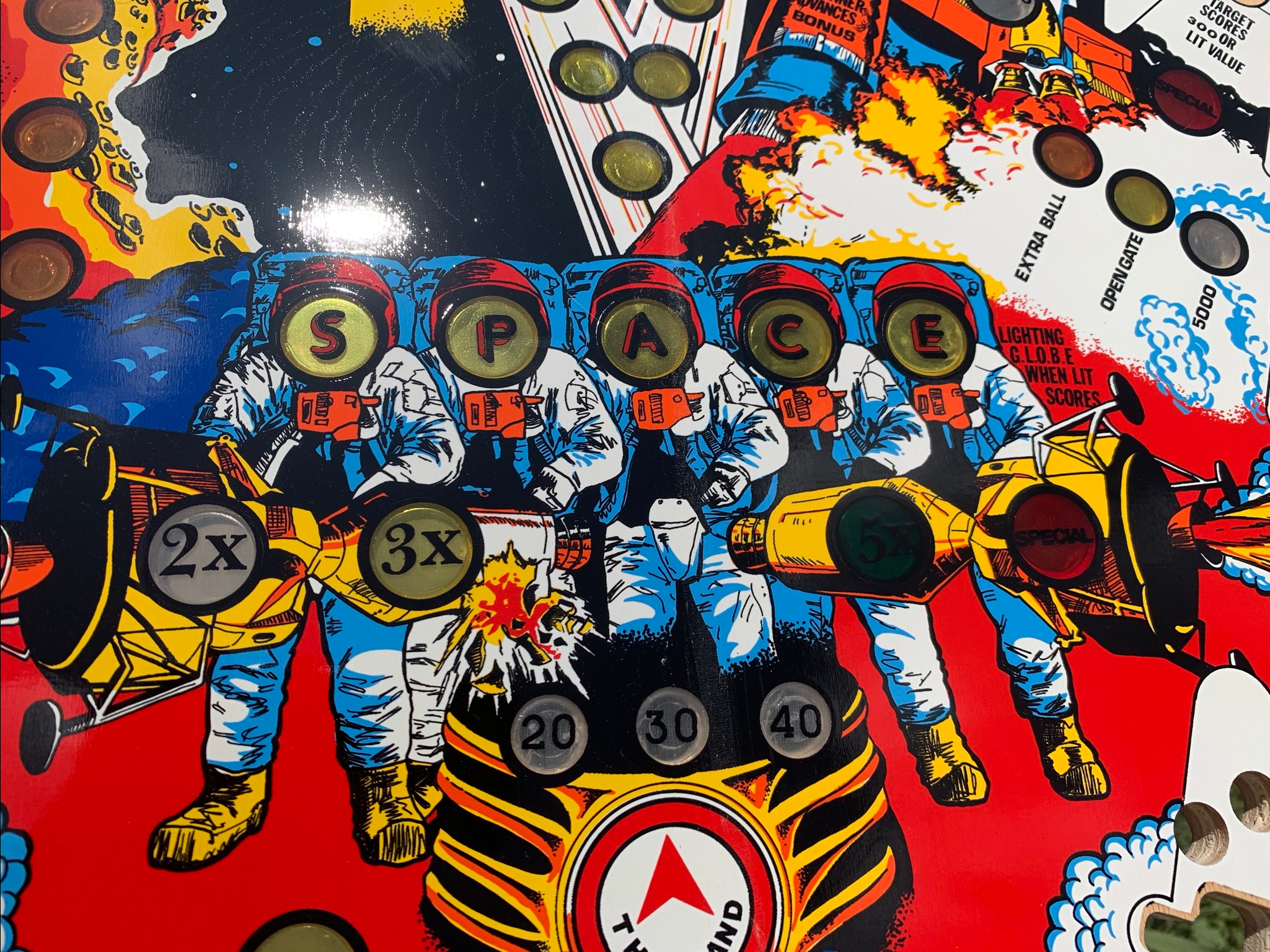 Considering the age this playfield is still in amazing condition, there is no planking, the inserts are not cupped, and there is no warpage of the playfield in any way.