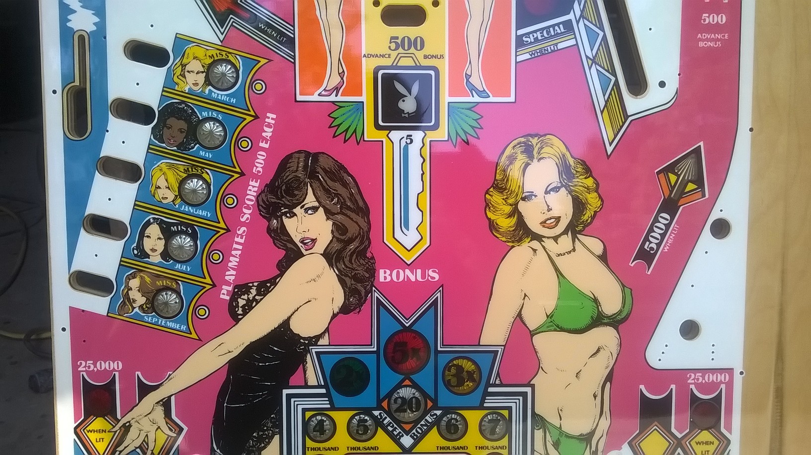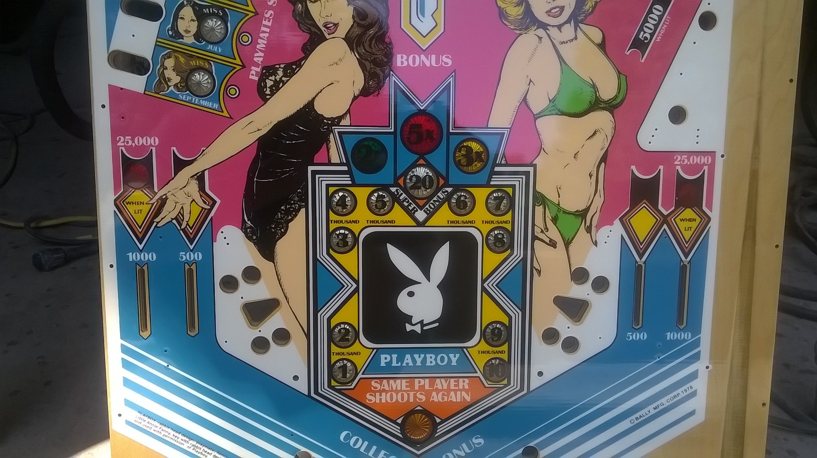 SOLD This is the last of the screen printed Bally Playboy playfields from CPR’s latest run. If you want the closest thing to an original that you can get here it is. I don’t want to sell it since I have a machine to restore myself, but if someone else absolutely needs this $1300 is my let it go price. SOLD
