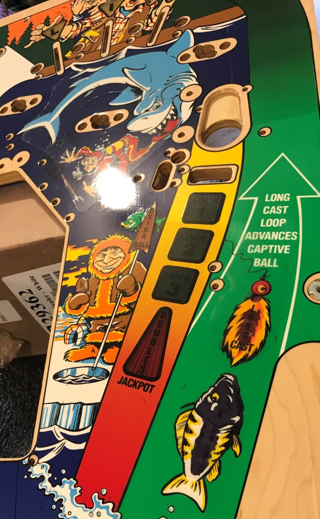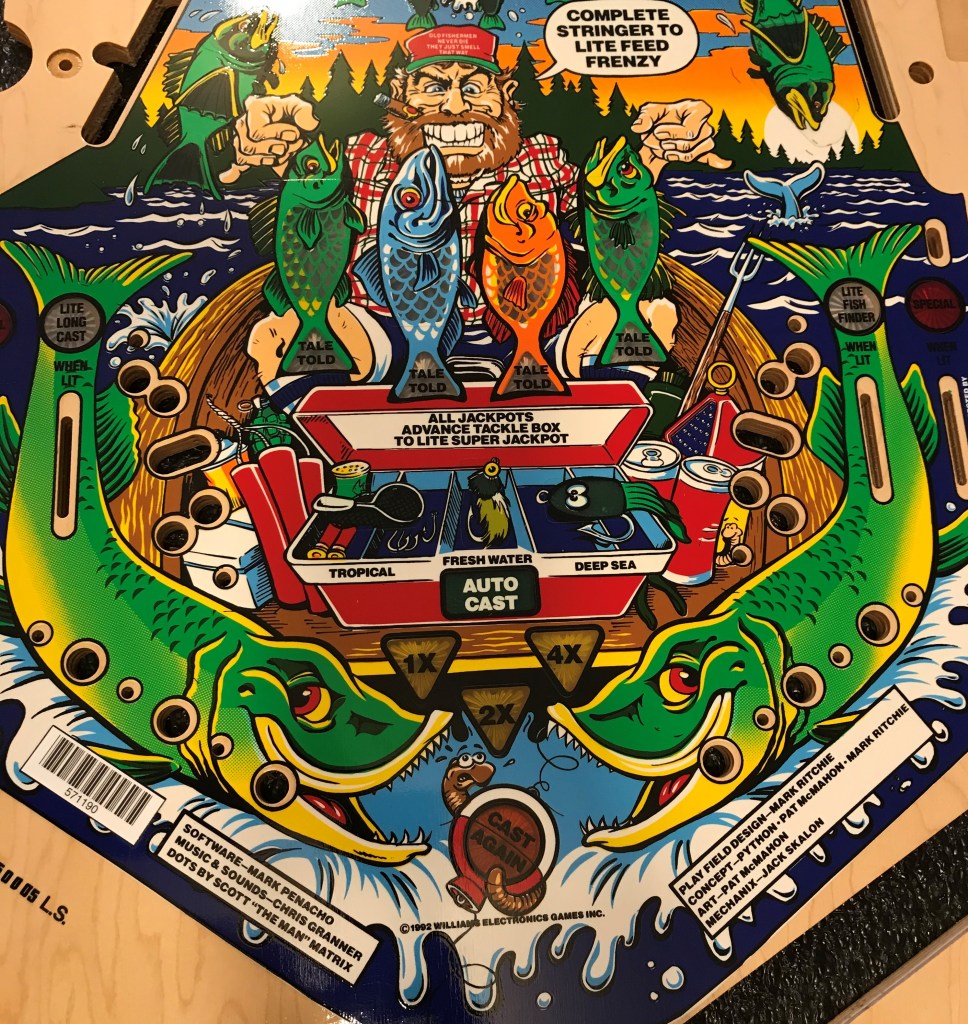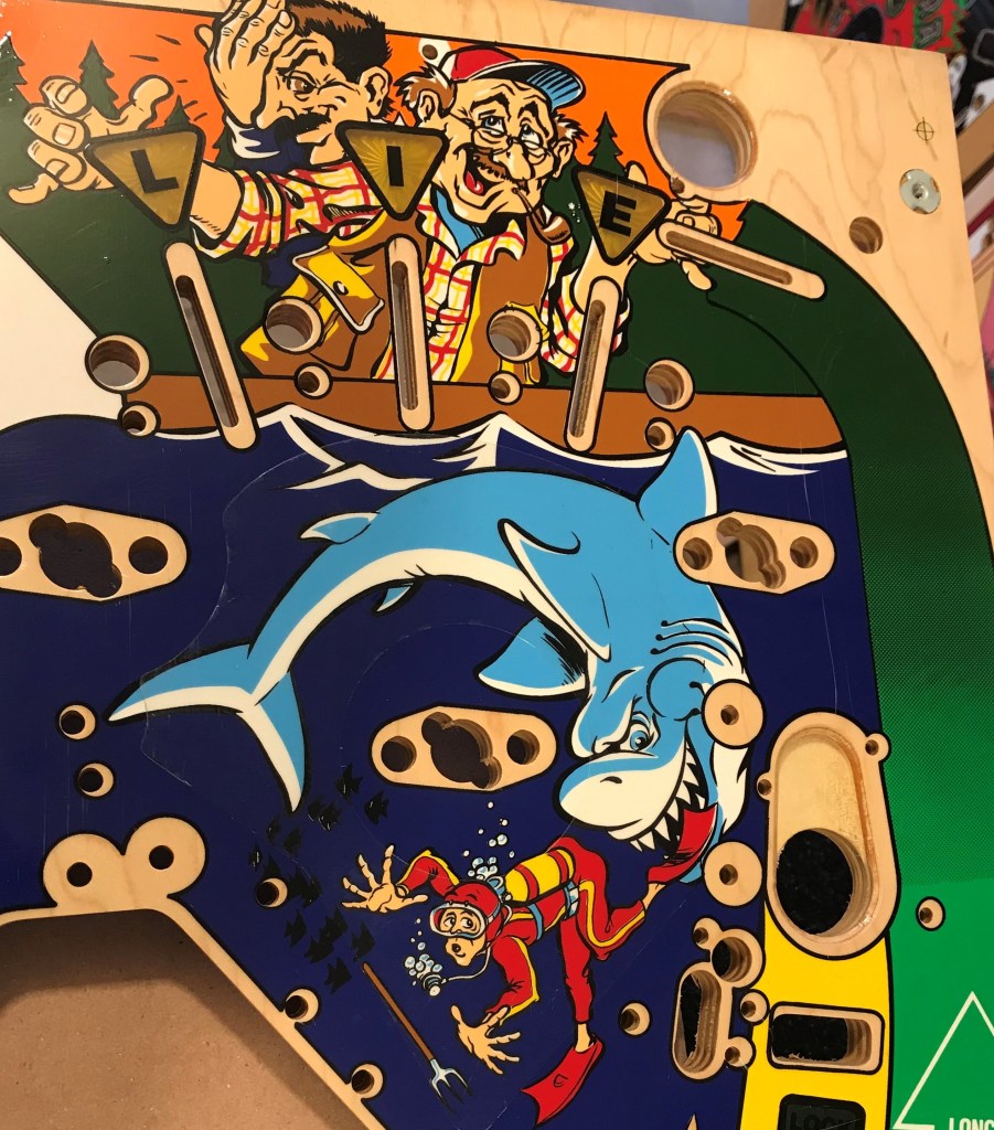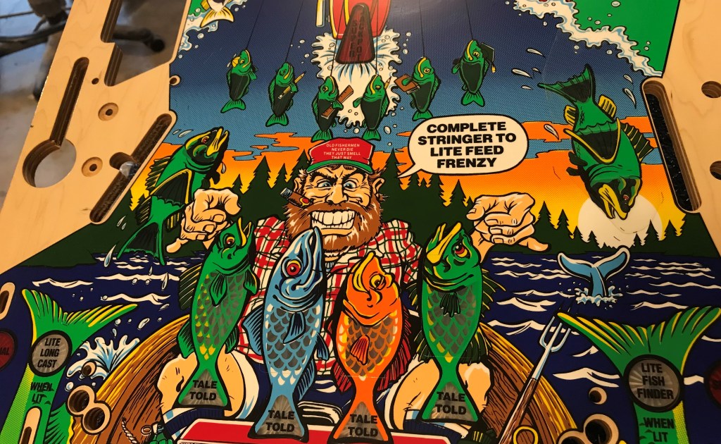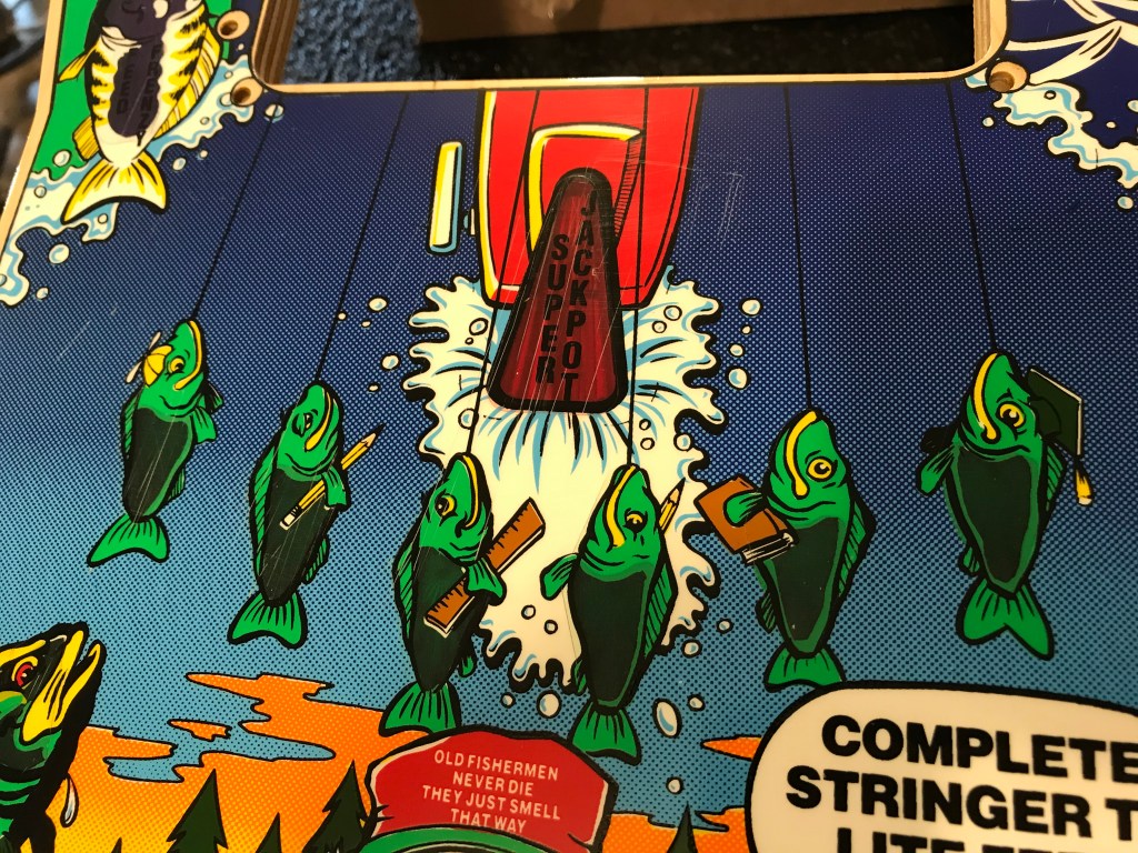 SOLD It’s time to go fishing with this super rare NOS Fish Tales playfield! One of the first games that got me hooked on pinball can now be perfected as you master deep sea fishing, make long casts, and snare a few Monster Fish! The bright color palette on this game really stands out on this NOS example. The playfield will need to be drilled and dimpled, a service I can provide in addition to my clear coating services. Keep in mind these additional services will take additional time, but the quality is well worth the wait. Don’t rock the boat by waiting to reel in this deal, reach out now to discuss getting this playfield into your machine! SOLD!