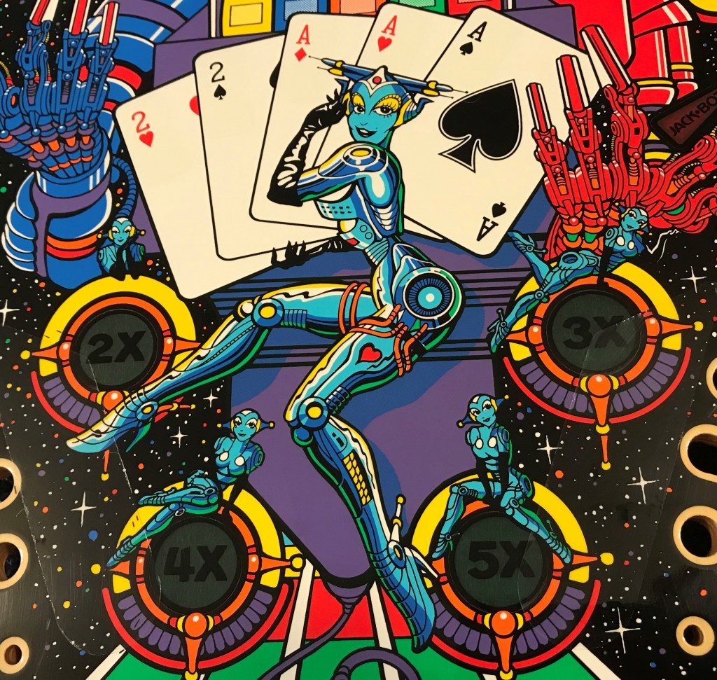SOLD – So you want to hit the casino and make a run for grand prize? Jack*Bot is the only way to go. The third title in the Pin*Bot trilogy, and widely regarded as the best in the series, Jack*Bot takes the old Pin*Bot layout and modernizes the rules and DMD display to make on the best sleeper hits of the mid-90s. This game is fast and furious, and as an early work of Lyman Sheets it has some of the greatest risk/reward code sets ever made. Jack*Bot is the love child of Pin*Bot and the Bride of Pin*Bot and it really did an amazing job of melding all the love of those two titles into this perfect creation for the modern era of pinball. On top of that I have literally never seen another one of these NOS playfields come up for sale so this one to me at least seems very rare. This like most of these NOS playfields will still need to be drilled and dimples, a service that I can provide, and additionally I can add my perfected Clear Coat to make sure this playfield out lasts you and me, and hell maybe even the real robots that will one day take over our planet. Reach out to me to discuss this playfield if you are interested in making your Jack*Bot the finest one in existence for only $1000! -SOLD