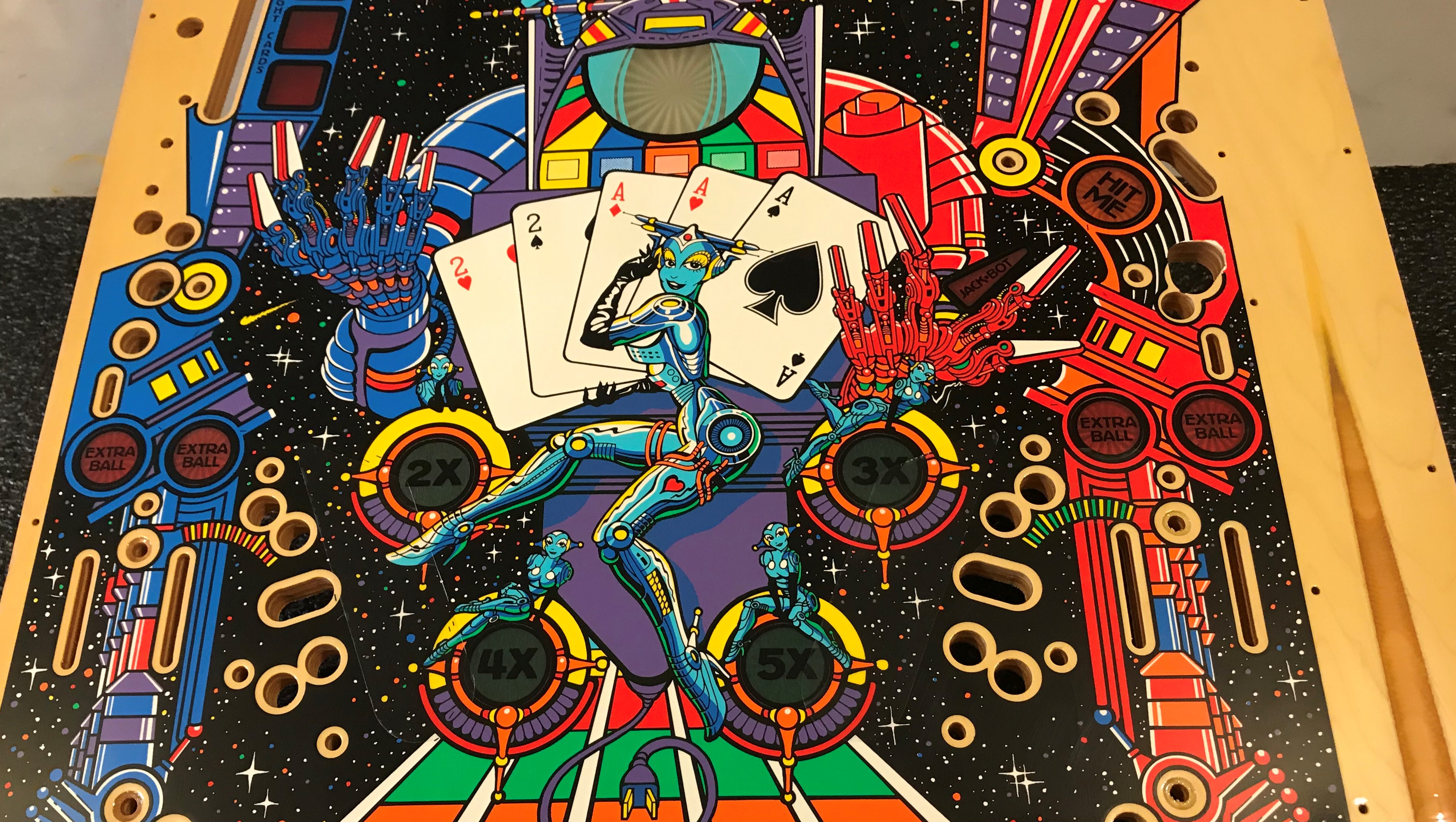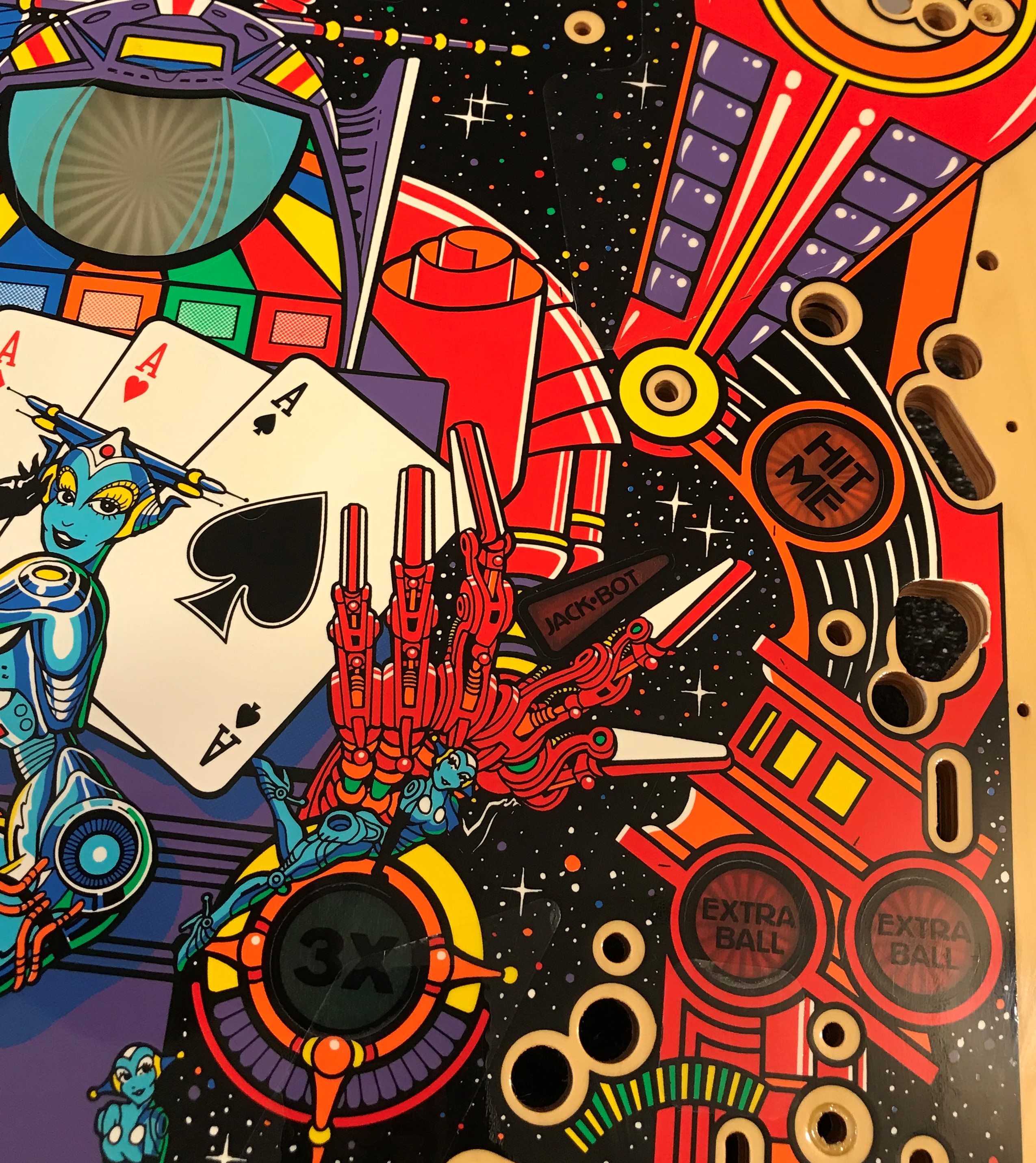 SOLD – So you want to hit the casino and make a run for grand prize? Jack*Bot is the only way to go. The third title in the Pin*Bot trilogy, and widely regarded as the best in the series, Jack*Bot takes the old Pin*Bot layout and modernizes the rules and DMD display to make on the best sleeper hits of the mid-90s. This game is fast and furious, and as an early work of Lyman Sheets it has some of the greatest risk/reward code sets ever made. Jack*Bot is the love child of Pin*Bot and the Bride of Pin*Bot and it really did an amazing job of melding all the love of those two titles into this perfect creation for the modern era of pinball. On top of that I have literally never seen another one of these NOS playfields come up for sale so this one to me at least seems very rare. This like most of these NOS playfields will still need to be drilled and dimples, a service that I can provide, and additionally I can add my perfected Clear Coat to make sure this playfield out lasts you and me, and hell maybe even the real robots that will one day take over our planet. Reach out to me to discuss this playfield if you are interested in making your Jack*Bot the finest one in existence for only $1000! -SOLD