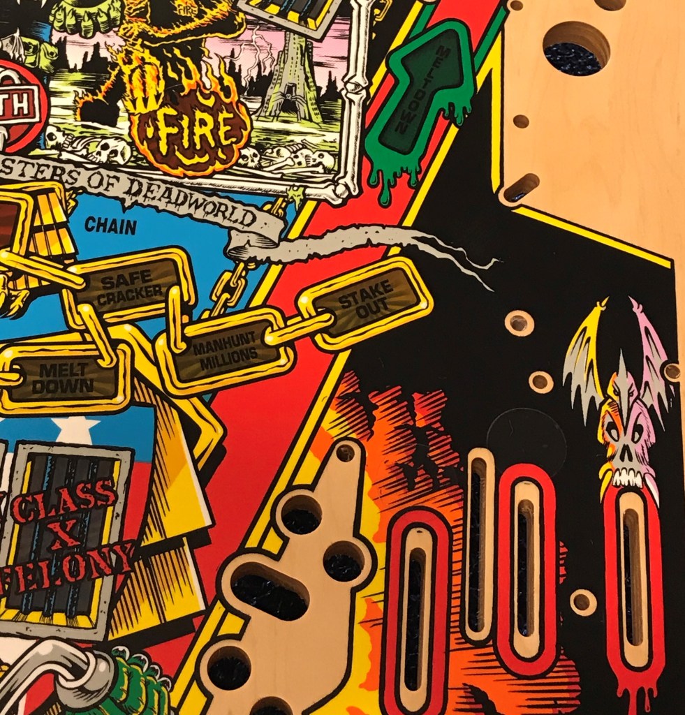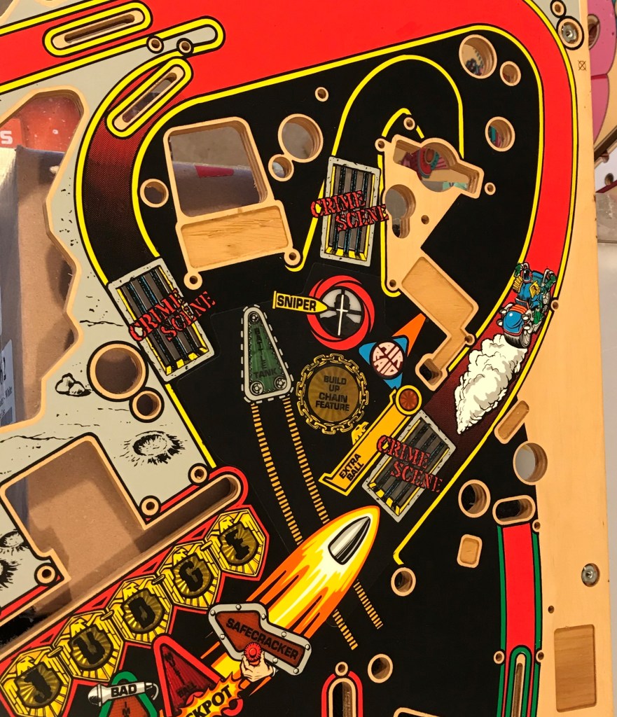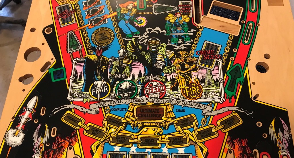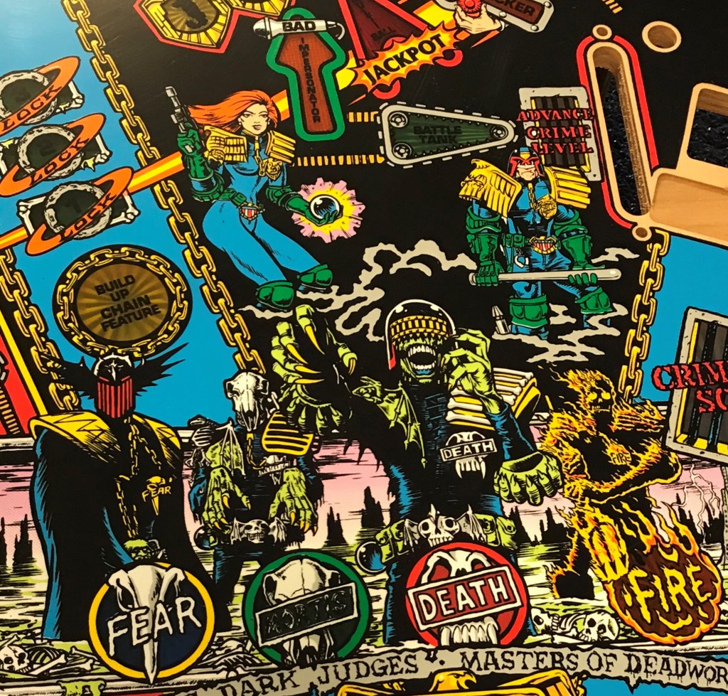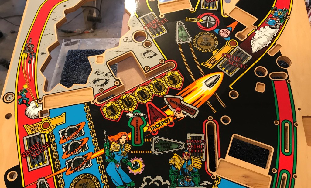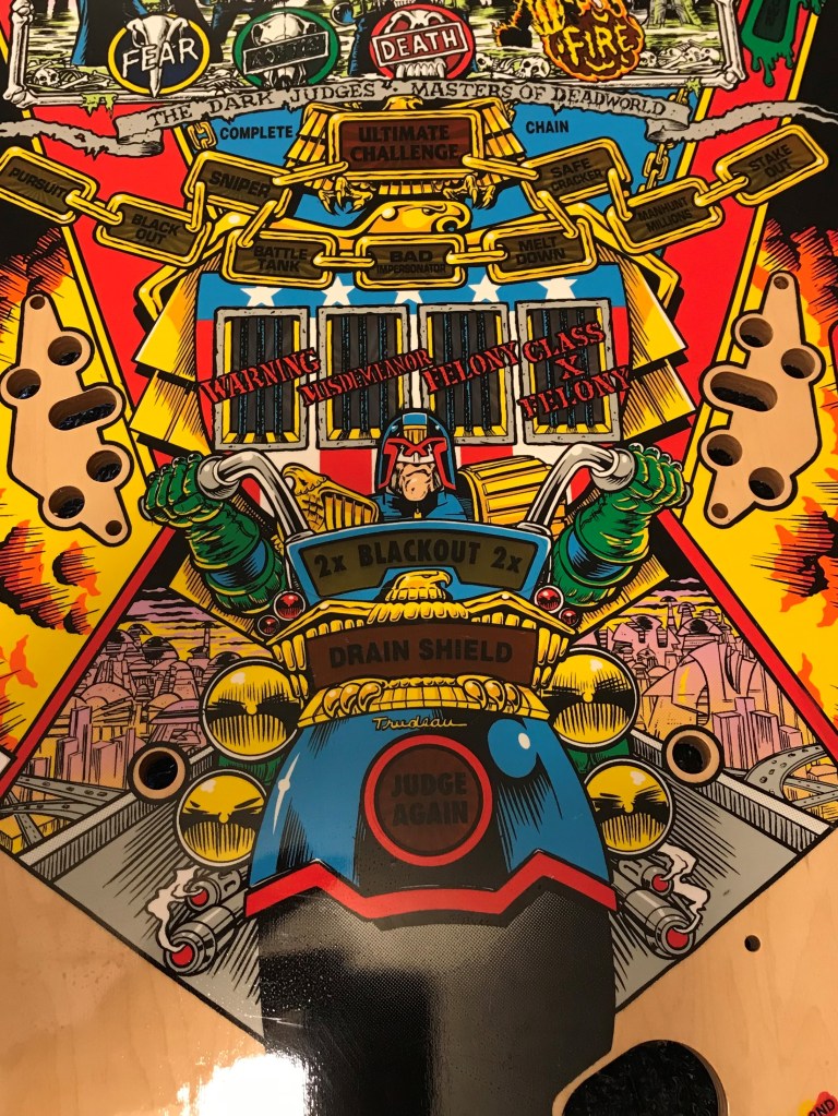 SOLD Don’t do the crime, unless you can do the time. It would be a massive crime to not install this NOS Judge Dredd into your machine. The game many consider to be the most underrated title in Bally/Williams widebody SuperPin Series, Judge Dredd deserves your attention, or he will take you out just like the sniper in the tower! This game has it all, 4 flippers, 4 ramps, VUK, captive balls, subways, orbits, kickbacks, a freaking rotating planet that locks balls and a damn crane! Can you imagine what manufacturers would charge to make a game this loaded in 2021?! Add in a great rule set, a second game included with the Super Game option, and a machine that has more mods available than almost any other out there it is a title unlikely to leave your collection soon so you may as well make it as close to factory perfect as possible! This one will need drilled and dimpled, a service that I can provide, and as always let me know if you would like me to add the Kruzman Clear Coating services as well! Remember this is a factory NOS playfield with mylar already installed. SOLD