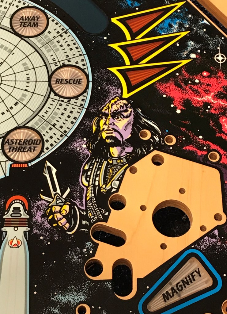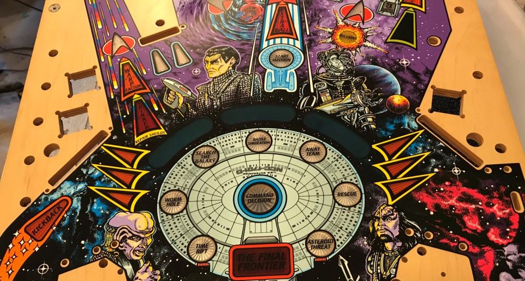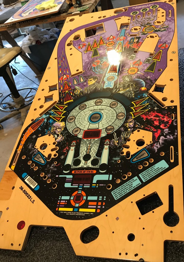 SOLD – Talk about a piece of history! You could travel the galaxy, universe, hell even the multiverse and likely not find another one of these playfields at this point. Easily distinguished by its large Neutral Zone hole in the playfield, this playfield can be modified to work in a production STTNG machine with a little bit of carpentry. Another machine from the widebody SuperPin era this one is coveted by collectors of Star Trek memorabilia and pinheads alike. It has great art, amazing shots, and a rule set that keeps you coming back for more and more. Another loaded machine with ramps, subways, staged balls, freaking cannons! It doesn’t get much better than the heyday of Bally/Williams than a NOS Prototype STTNG playfield going into your machine! I can drill and dimple this playfield for you, as well as provide my clear coating services if you have the patience to wait. If not this playfield can still be used. Please reach out to me to discuss purchasing, and what services you would like to be included. SOLD