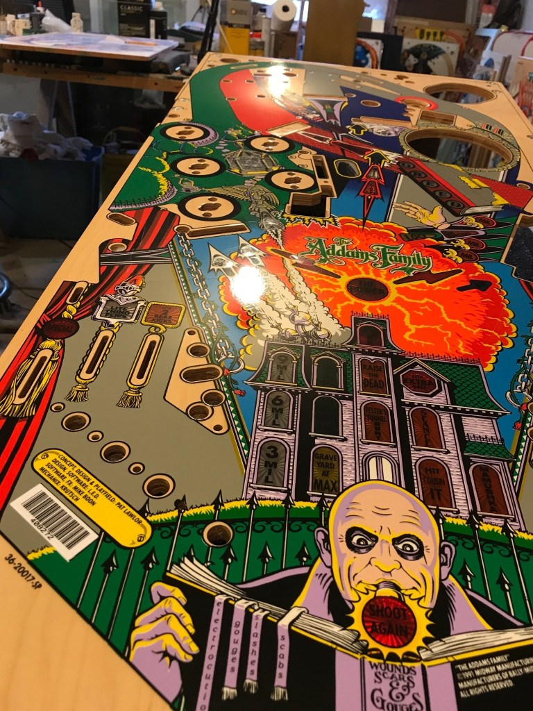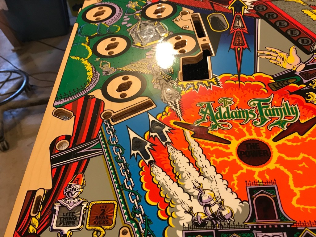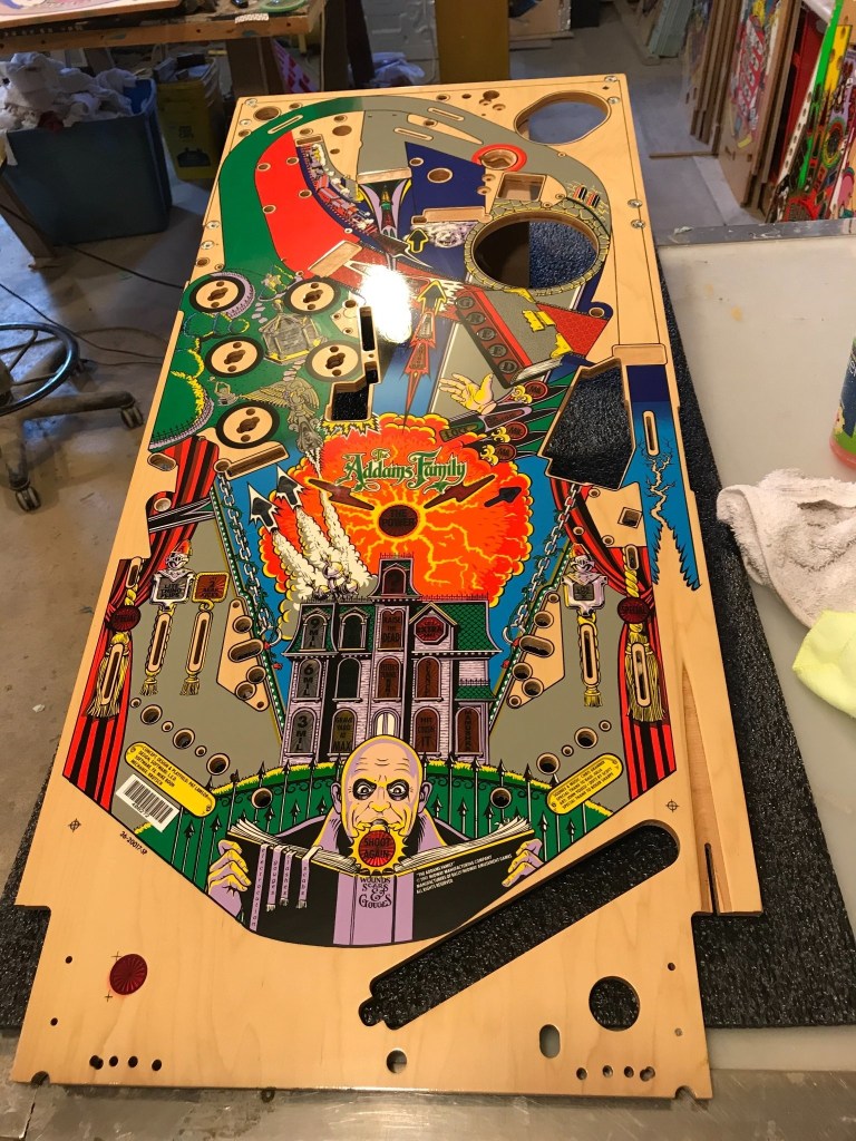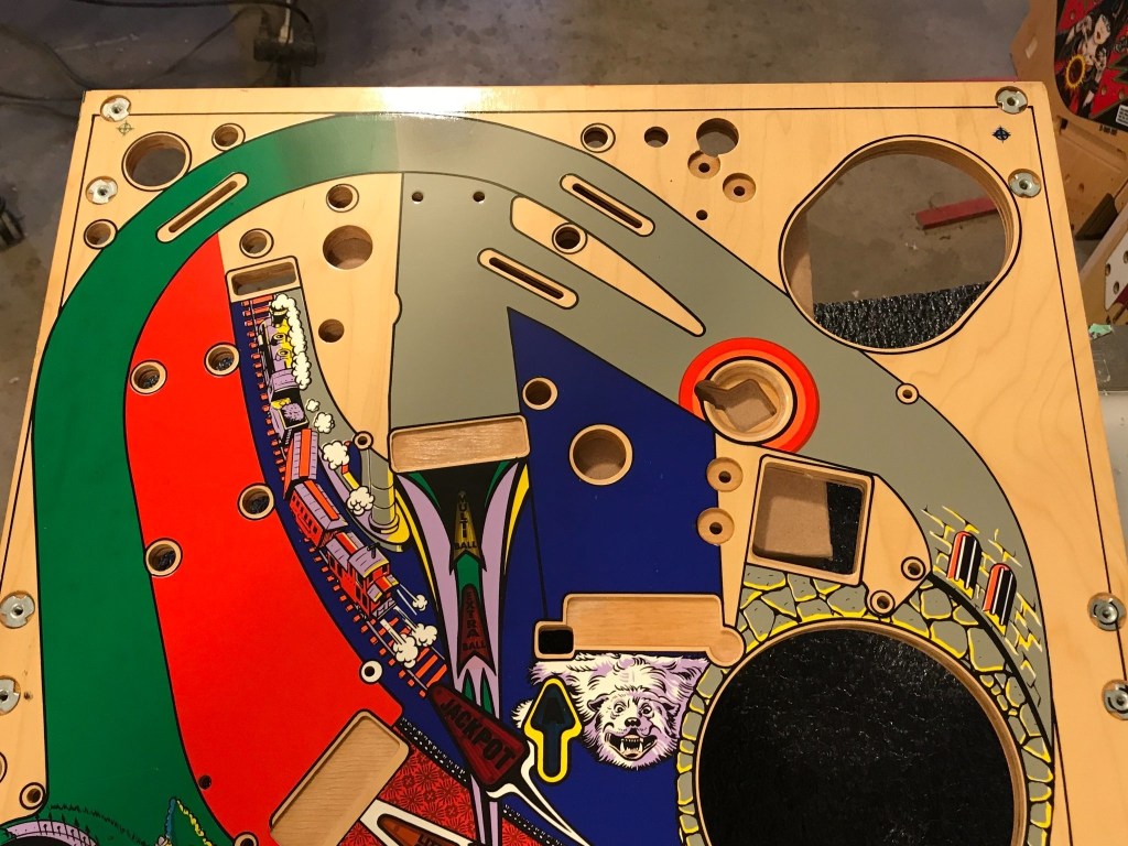 SOLD HOLY GRAIL! That is all I can think when I realized what this playfield is exactly. The dead giveaway is missing Diamond Plate text in the right outlane area. You can also tell by the different tone to the carpet pattern leading to the train shot as well. You will absolutely not find another one of these playfields as a NOS. Yes there are reproductions out there, but not of this. If you have a TAF GOLD this is probably your only chance to ever score on of these playfields. It will need drilled and dimpled, I can provide this service, and I strongly strongly strongly recommend adding my clearcoat to this playfield to make sure your TAF GOLD lasts forever! Please reach out to me with interests and questions about this playfield! SOLD