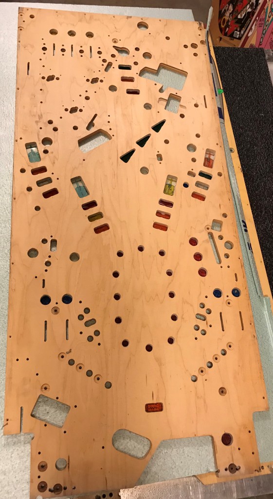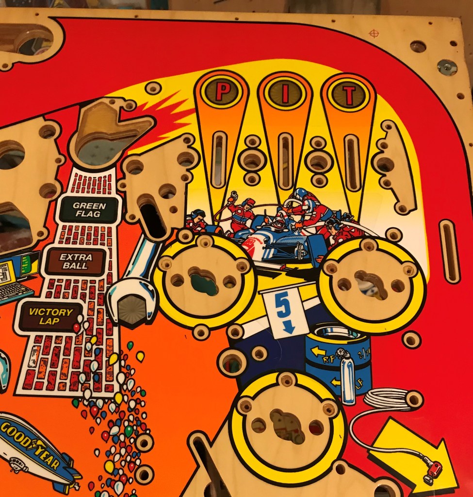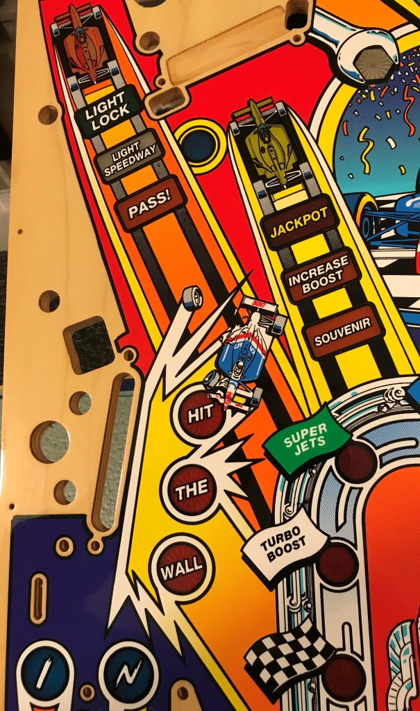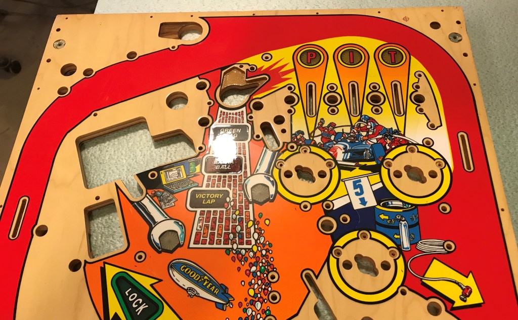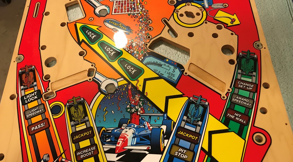 SOLD – Start your engines! Shoot the turbo Bobby! Some of my favorite callouts on a machine, informative and yet taunting as you miss that lock shot again and again. This game is a hit all around the midwest, but especially in Indiana where it is the prized machine in many peoples collections. A frequent victim of ball drop wear in the right inlane from the ball launch, your playfield could likely benefit from this upgrade! One you don’t see come up often, and very unlikely to be remade, don’t miss this opportunity to grab the checkered flag and get your Indy 500 to the finish line! This playfield does have a few small imperfections on it, but nothing that isn’t easily touched up before adding in my clear coating services. It will also still need drilled and dimpled, a service I can provide, or if you don’t mind the work can just be done as you are installing it into your machine. – SOLD
