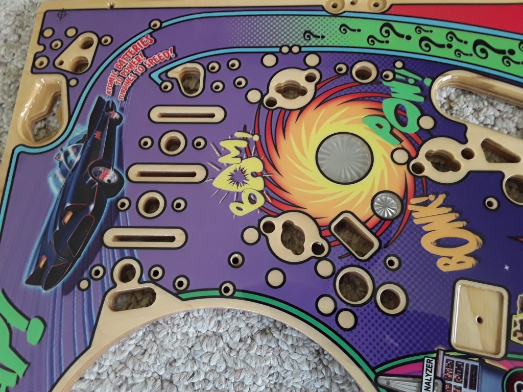 Perhaps the greatest coded game in the history of pinball, Lyman Sheet’s love letter to a series that defines many of our childhoods! Batman 66 set a new precedent in pinball when it was released a few years ago! This game has eaten up more hours of my life than I care to admit to. If you have the game already I wouldn’t hesitate to purchase this playfield for a restoration down the road as we all know a bit too well how stern playfields can hold up, and I absolutely would recommend adding my clear coat to this one to ensure that your game last at least another 66 years! This playfield does require dimpling still!