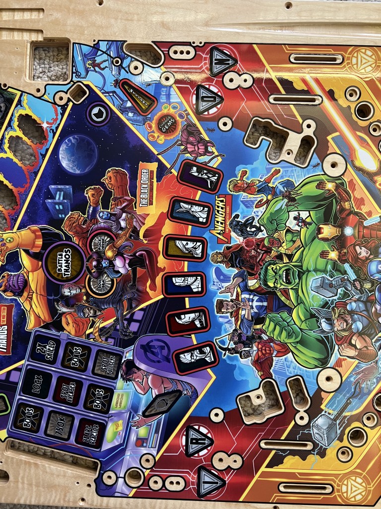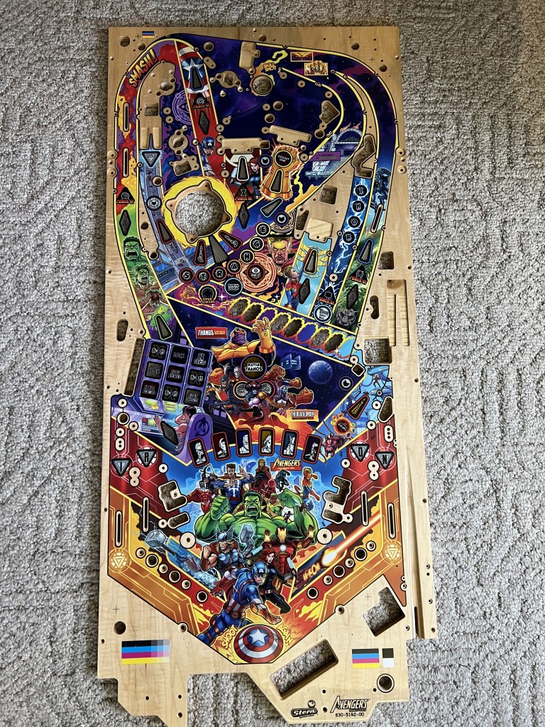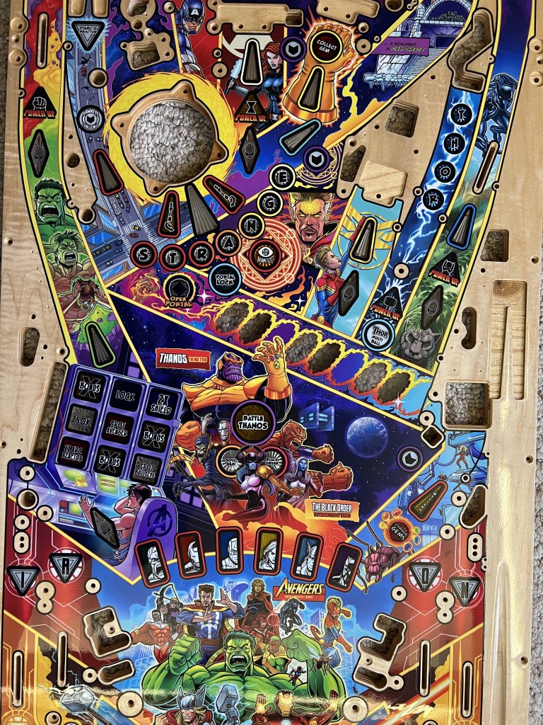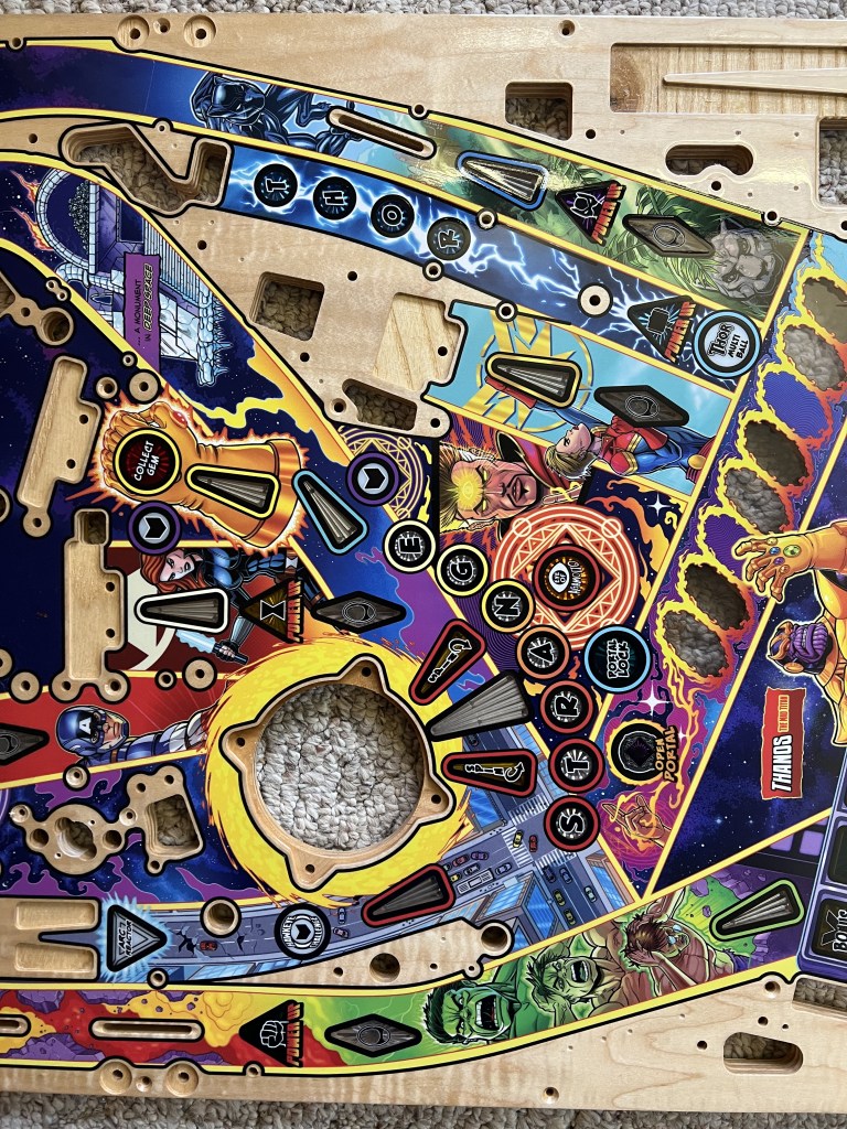 Another Keith Elwin masterpiece! His third game, and quite possibly his deepest, Avengers: Infinity Quest has one of the brightest and most jam packed playfields of any game out there. The game features a subway and a spinning disc, one of the most mech packed games that Stern has released in decades. If this is a forever game for you then you know you may as well get this bad boy clear coated by me and install it in your machine when you get the chance! $1300 and any questions just let me know!