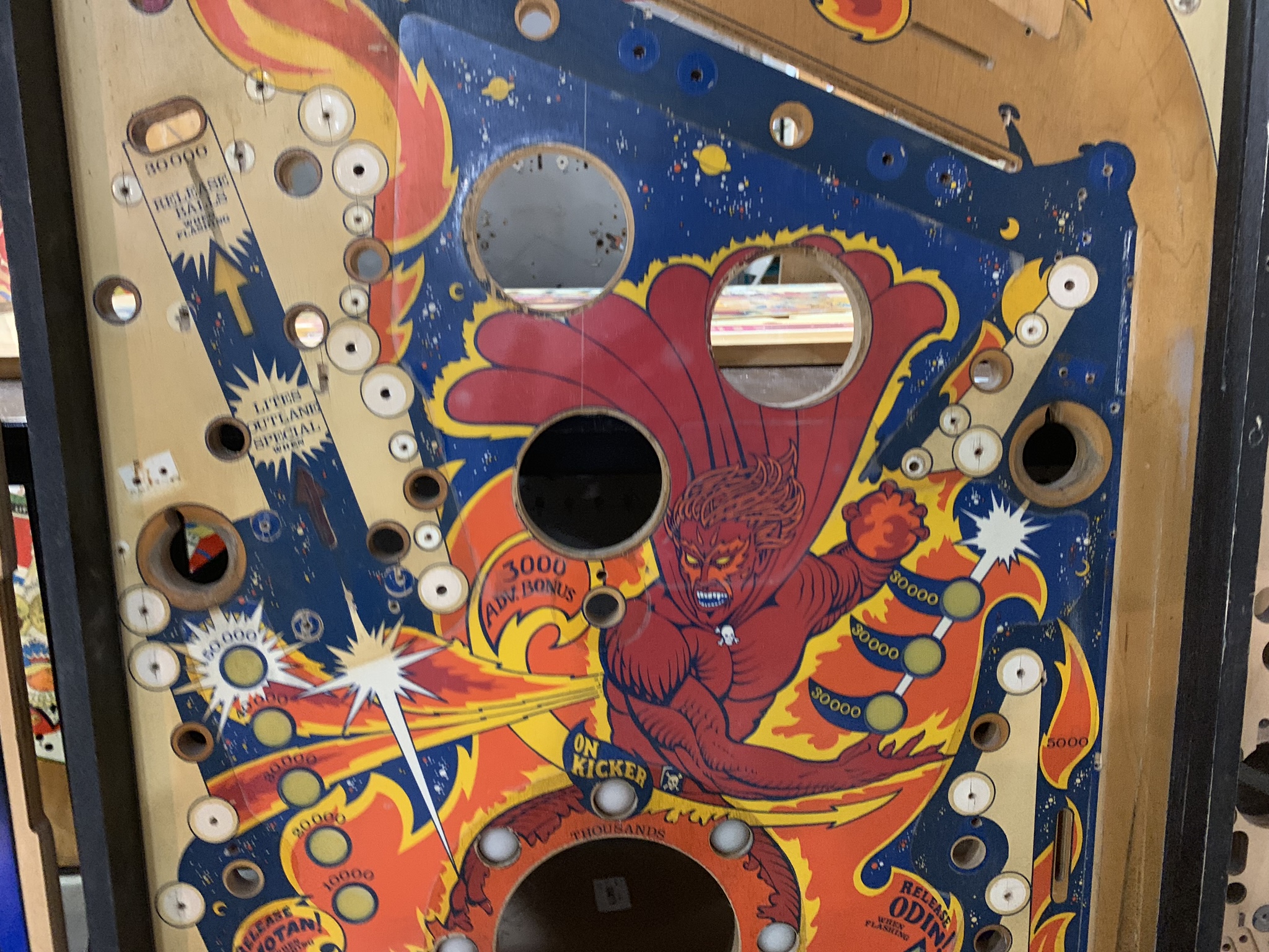 Man I don’t know if there is a game out there that has kicked my ass as bad as Fireball. The iconic machine that brought us the spinning disc tossing our balls every which way and causing us more pain and suffering than any game that came before it. Everytime I think of this machine it also reminds me of the classic movie Dazed and Confused as it appears in the pool hall as the teens are hanging out and enjoying every bit of the 70s that they can. Please the demons and make your Fireball better than an original by restoring this playfield and adding some clearcoat to have it playing faster than it ever has before.