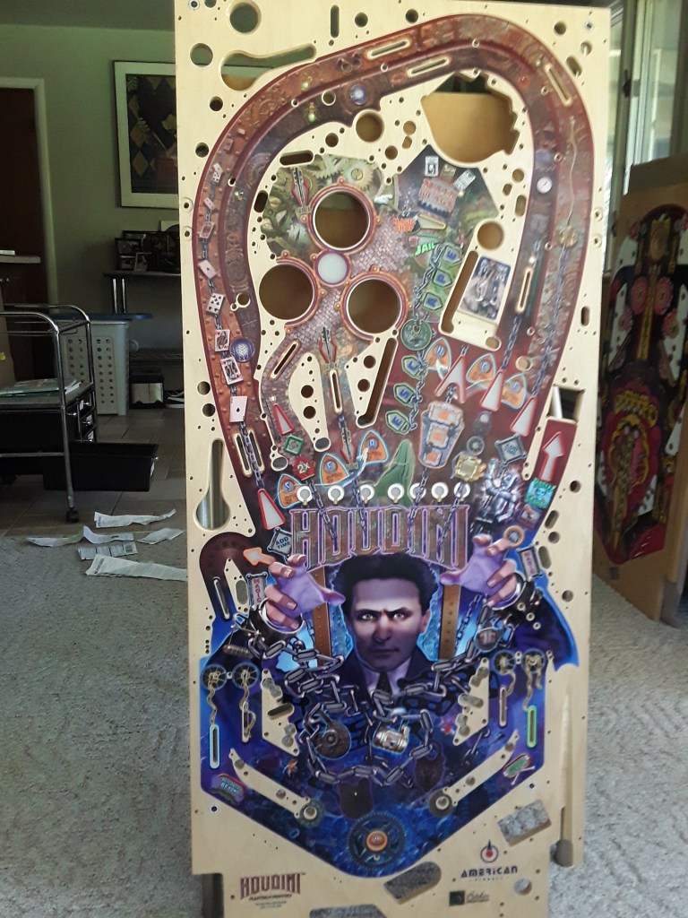 American Pinball’s first game Houdini! A very underrated game. This has been popping up for reasonable prices left and right so you may as well grab this NOS playfield and have me clear coat to make it play even faster!