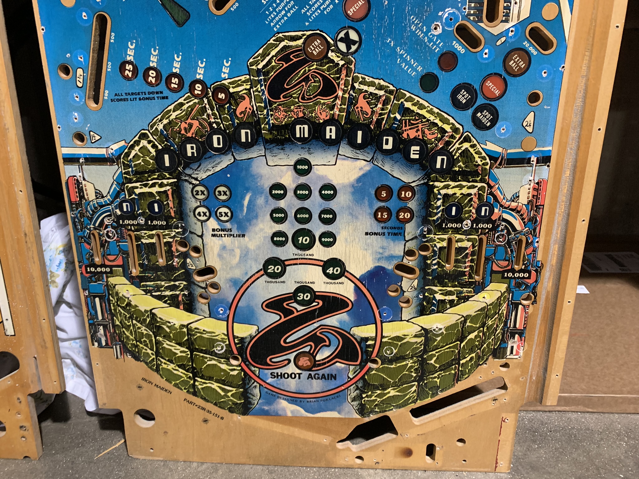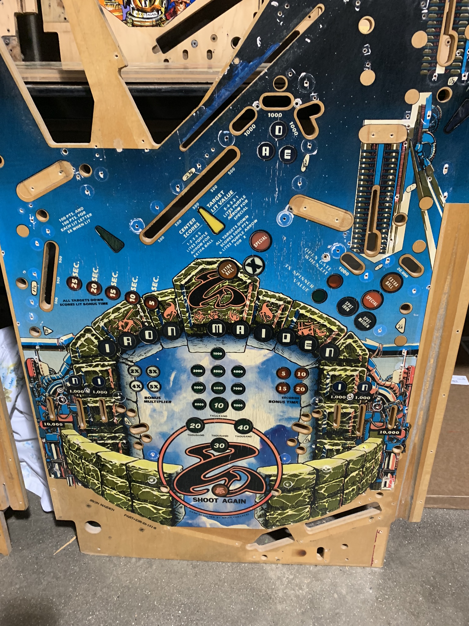 One of the rarest games from Stern Electronics, and not to be confused with Stern Pinball’s recent release, we have here an Iron Maiden playfield in much better shape than most I have seen installed in machines. This thing is an excellent restoration candidate. In no time you could touch this thing up and slap down a nice coat of clear to make your machine fast and brutal, while more than beautiful. Don’t miss out on your chance to snatch up this gem. This does include but not pictured upper playfield. $500 for the full set.