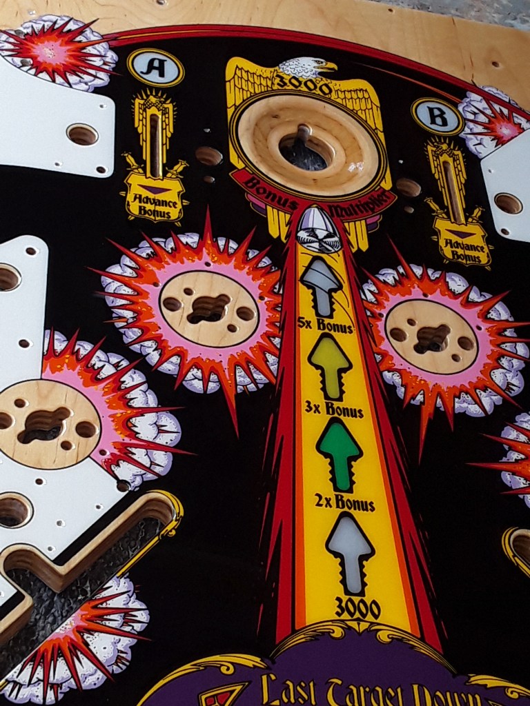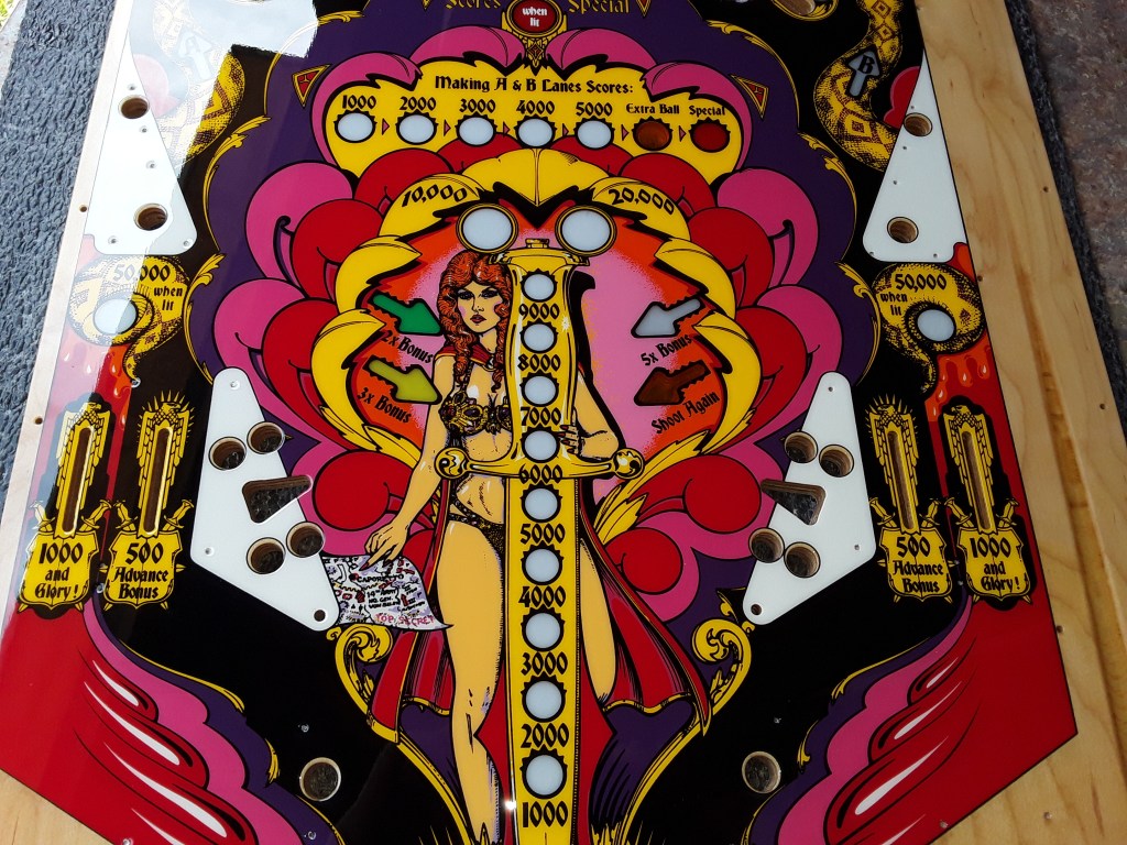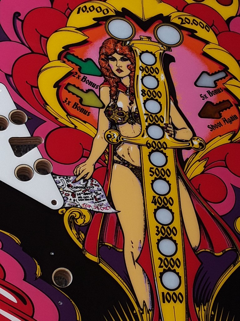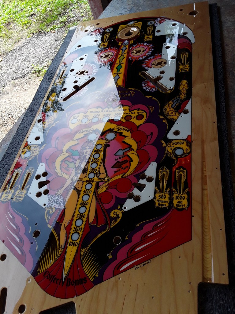 Here is one of the all time classic Ballys. This is a CPR playfield that was perfected by Kruzman, and then had his clearcoat added. It also comes with a set of Reese Rails. This thing is ready to go into a playfield ASAP! $1775 to make your Mata Hari the prettiest one out there!