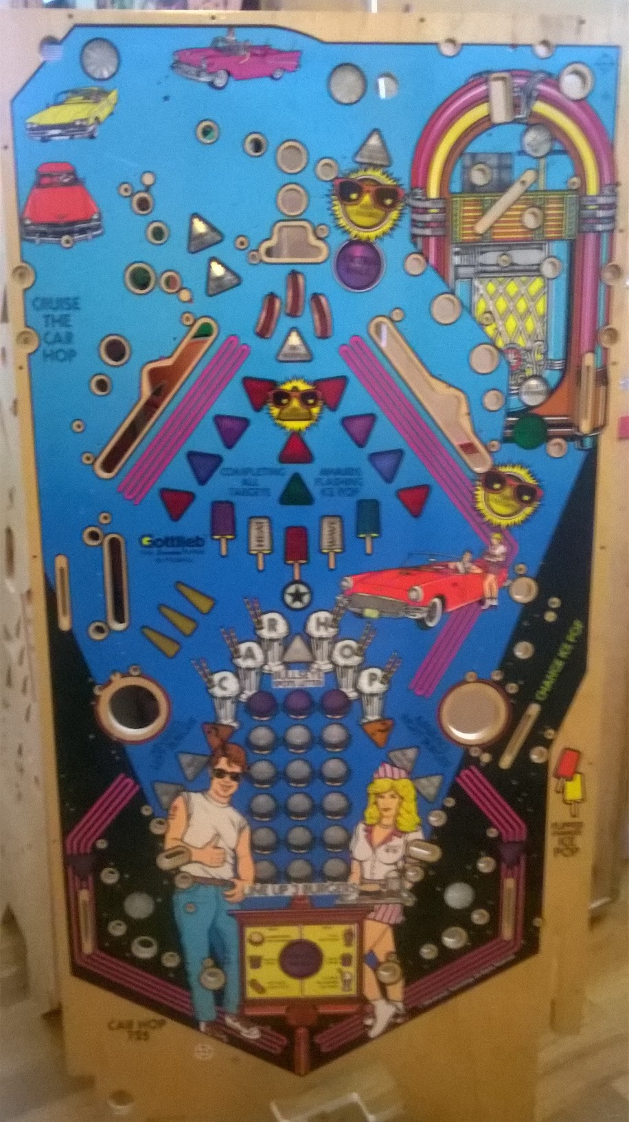 It’s not often I come across a title that I’ve never played anymore but here is one, Gottlieb’s Car Hop. If you have one of these rare beauties you know you want to make it perfect, and good luck finding this playfield somewhere else. It’s yours for only $800 and as always Kruzman clearcoat is available!