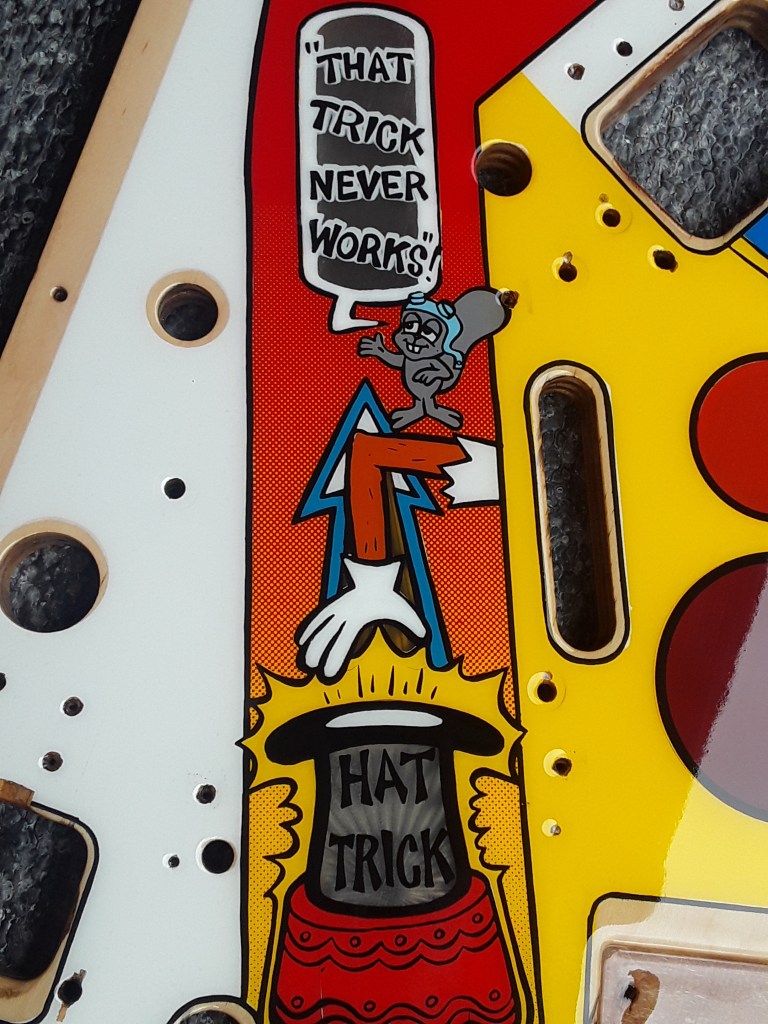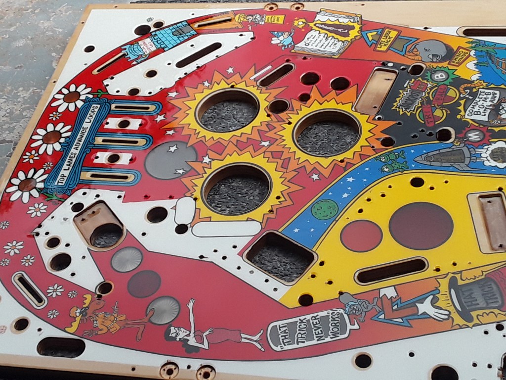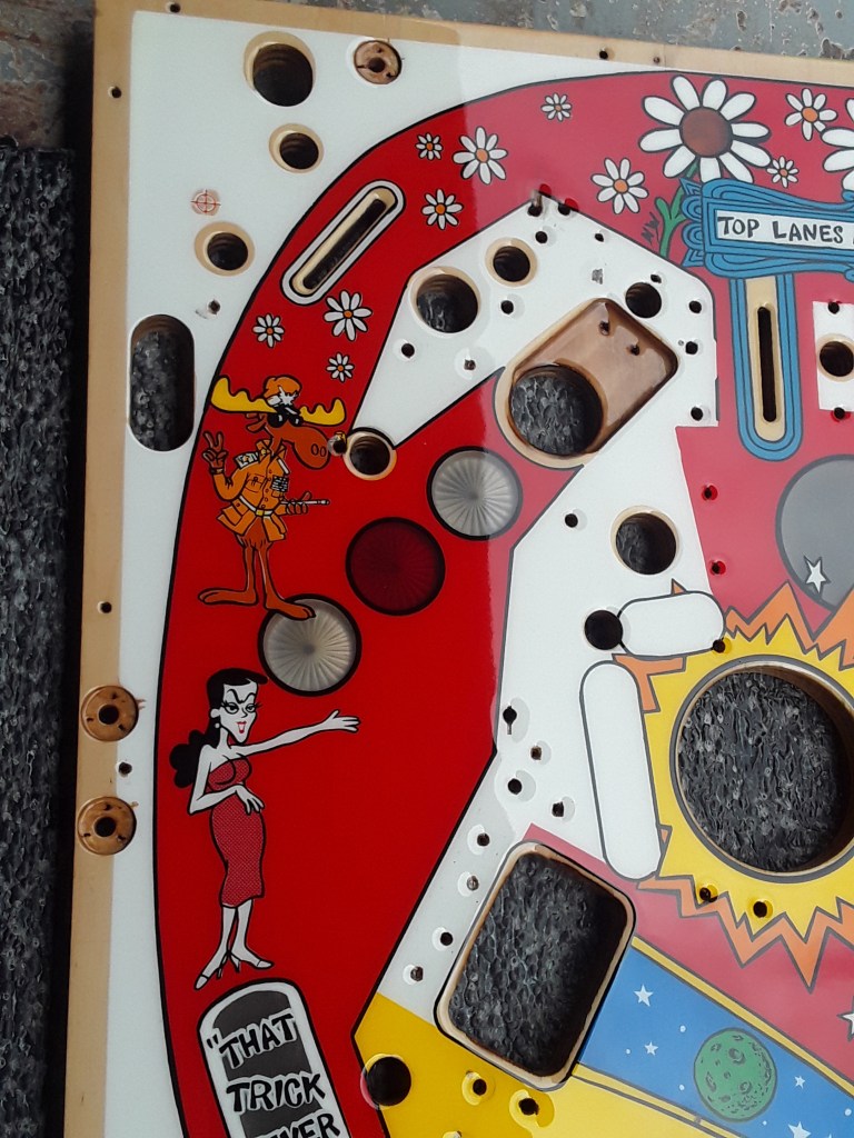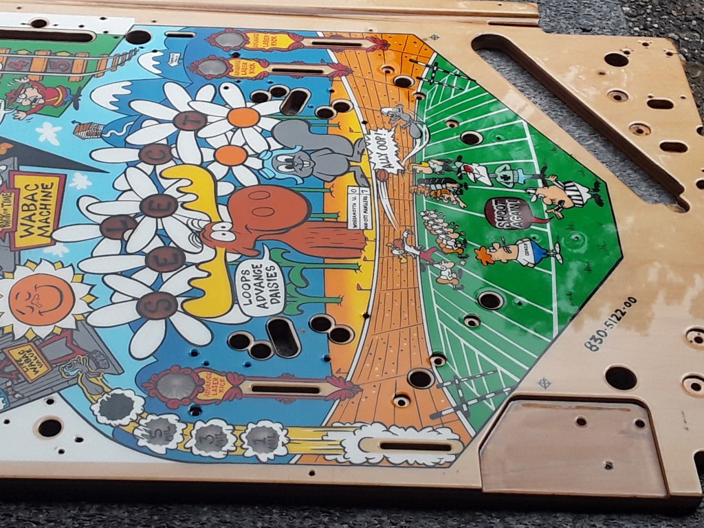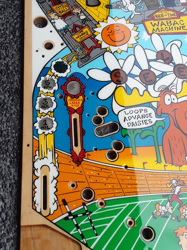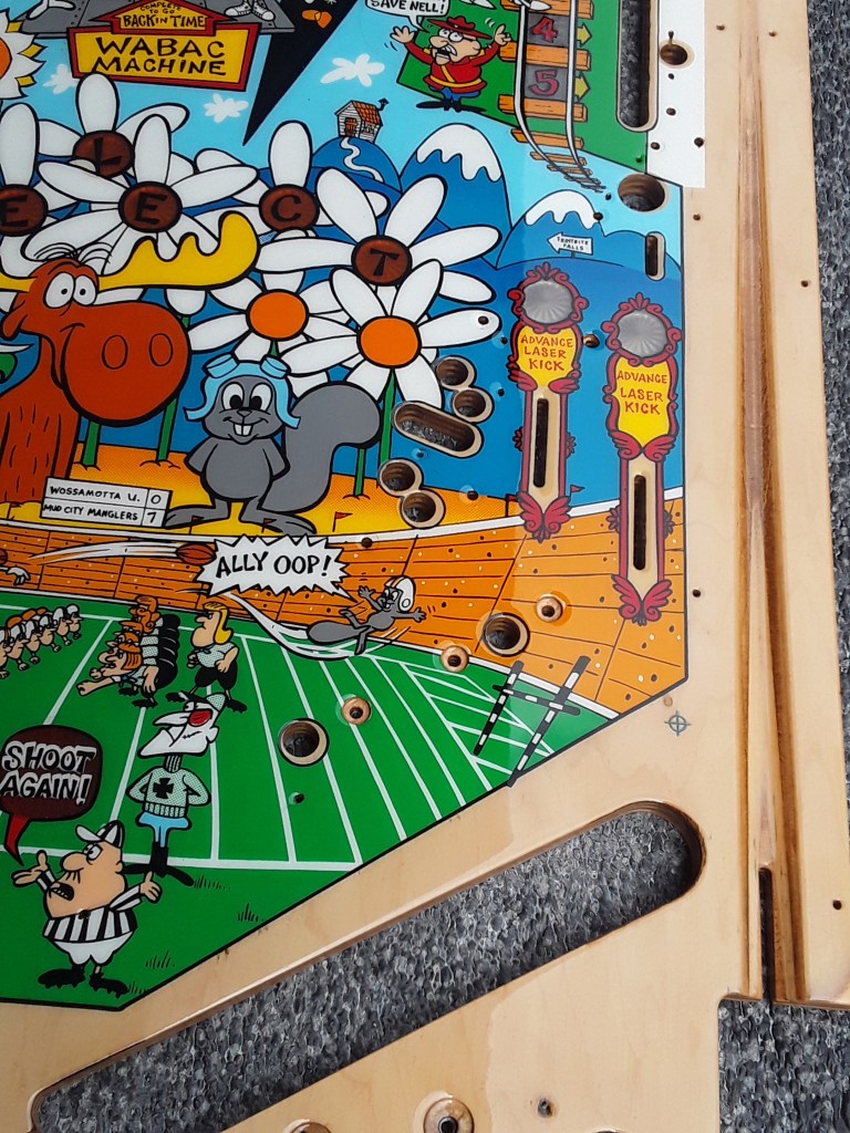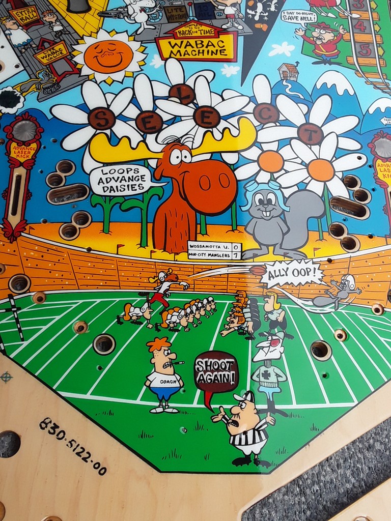 Not a playfield you find very often to begin with and now this one is used, but it has gotten the official Ron Kruzman treatment and it looks amazing! $1750 and you can have the nicest Rocky and Bullwinkle